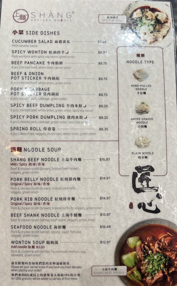 Overall, Shang Artisan Noodle stands out for its authentic flavors, generous portions, and reasonable prices, making it a must-visit spot for noodle lovers in the area.